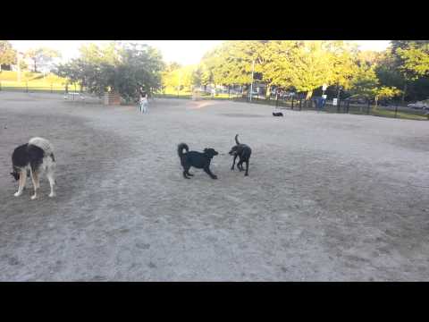 Greenwood dog park | Paladin play tug of war - Greenwood Dog Park - Chocolate lab is probably twice her weight :P.