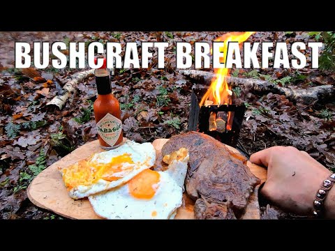 Campfire Cooking - Bushcraft Breakfast - Steak & Eggs - Campfire Cooking - I cooked up a bushcraft breakfast in the rain under a tarp shelter. A perfect way to spend a morning after exploring new woodland. Thanks for watching. Become ...